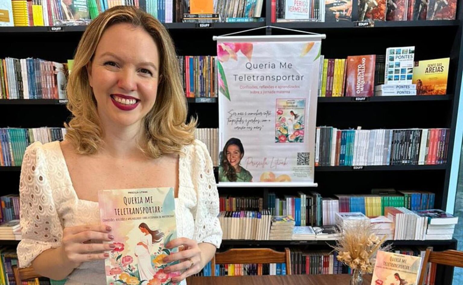 Pensando na presença e na escuta ativa entre mães e filhos, Priscilla também apresenta Queria Me Teletransportar – versão para colorir, que transforma trechos do livro em ilustrações autorais acompanhadas de frases inspiradoras. A proposta é que a leitura se estenda ao cotidiano por meio da arte, proporcionando momentos de afeto e memória afetiva.