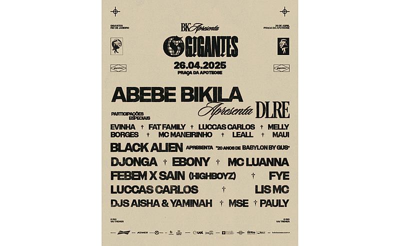 Neste sábado, dia 26 de abril, o Rio de Janeiro se torna o epicentro da cultura do rap nacional com a estreia do Festival GIGANTES – evento idealizado por BK’ que chega para marcar uma nova era na cena do rap nacional. Realizado na Praça da Apoteose, o festival nasce com um line-up estrelado por BK’, Djonga, Ebony, Black Alien, Luccas Carlos, Febem x Sain, MC Luanna e Fye, além das DJs Aisha & Yaminah e as artistas Pauly, Lis MC. E traz ainda um leque de marcas calibradas para elevar a experiência do público, com: Budweiser, a cerveja oficial do evento, presente nos bares proprietários com Budweiser e Bud Zero; Red Bull como energético oficial; os patrocínios de Chivas e Kenner; e o apoio de Xeque Mate e a Altafonte, parceira institucional do evento. Ainda há ingressos disponíveis, confira aqui.