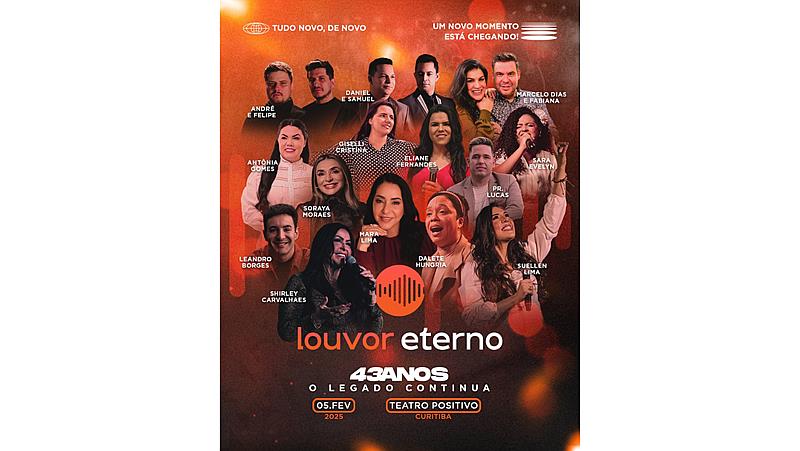 Uma das gravadoras mais importantes do segmento gospel e responsável por revelar grandes nomes na cena musical, a Louvor Eterno retorna ao mercado em grande estilo com um projeto comemorativo que celebra os 43 anos de história da empresa. A gravação acontecerá no dia 5 de fevereiro de 2025, no Teatro Positivo, em Curitiba.